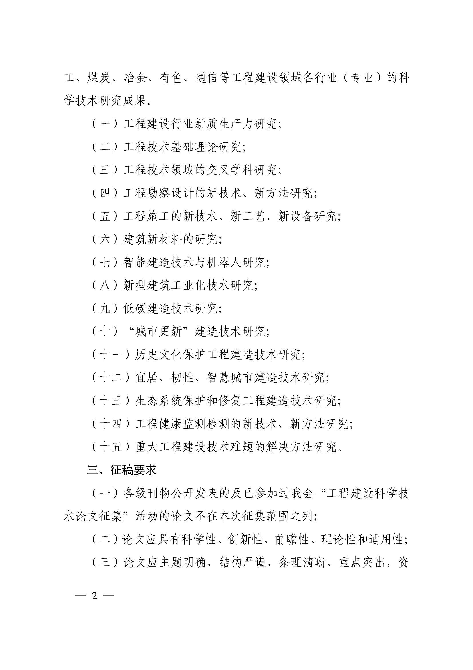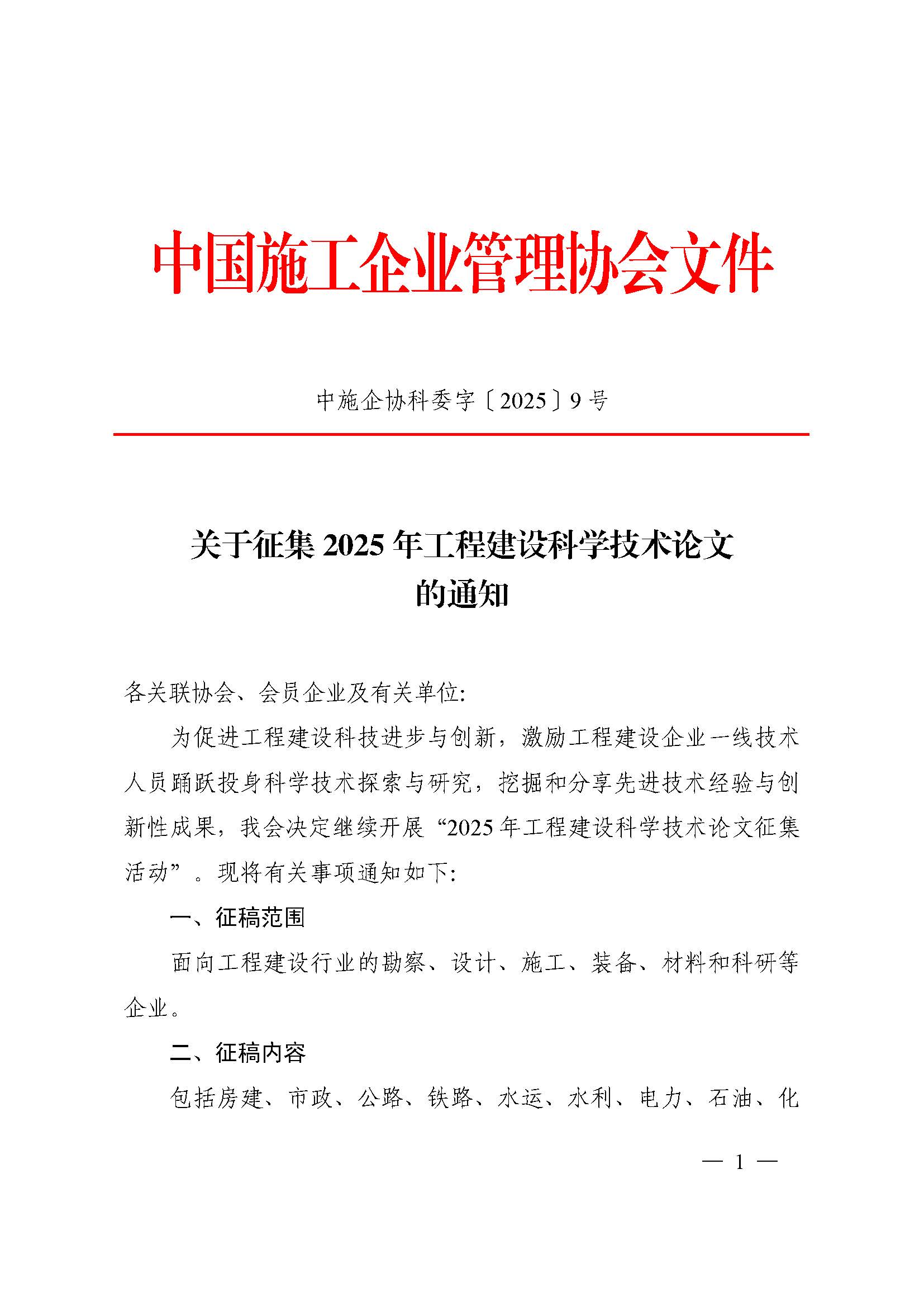 关于征集 2025 年工程建设科学技术论文的通知
